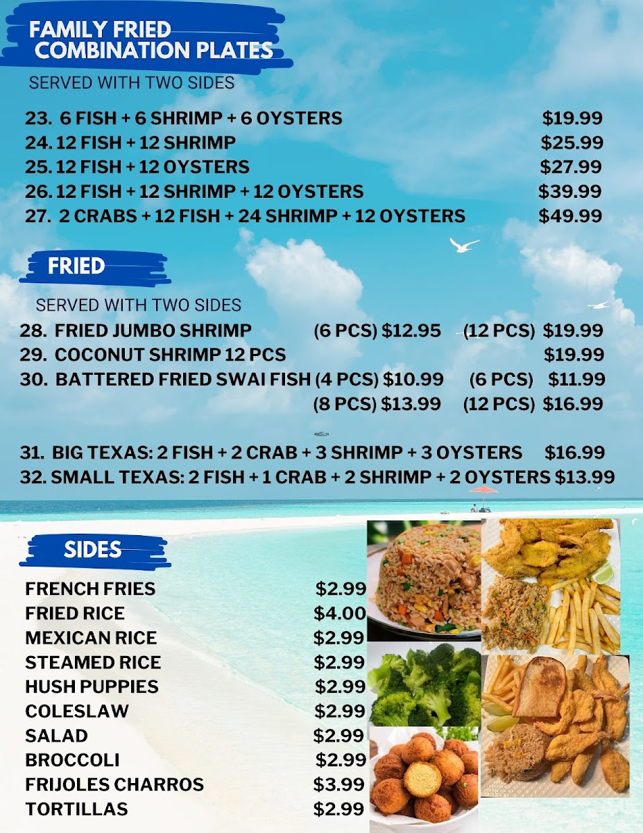 2pc, Fish 2 Crab 3 Shrimp 3 Oysters
